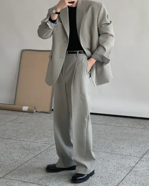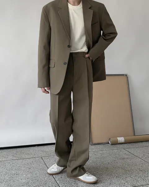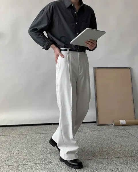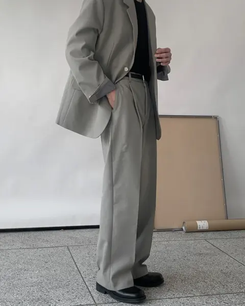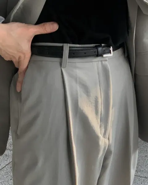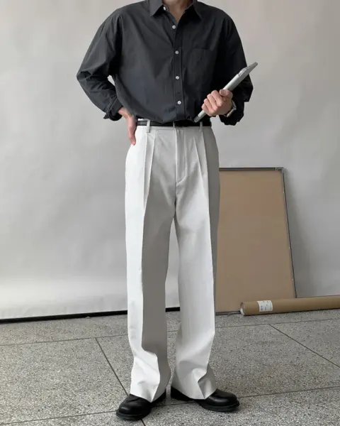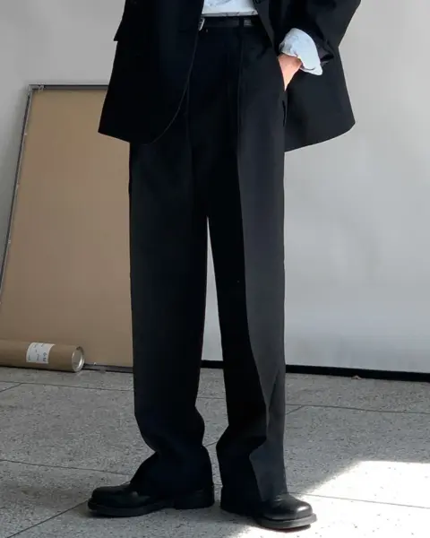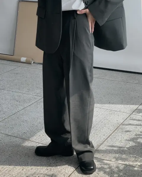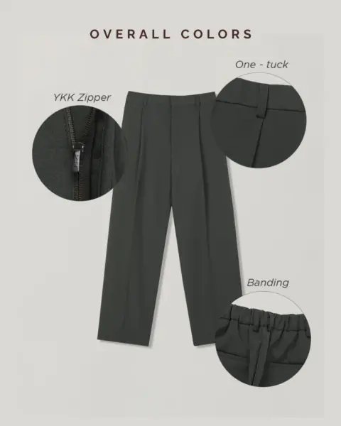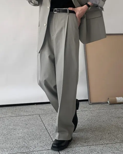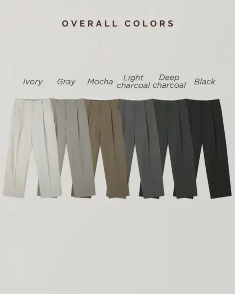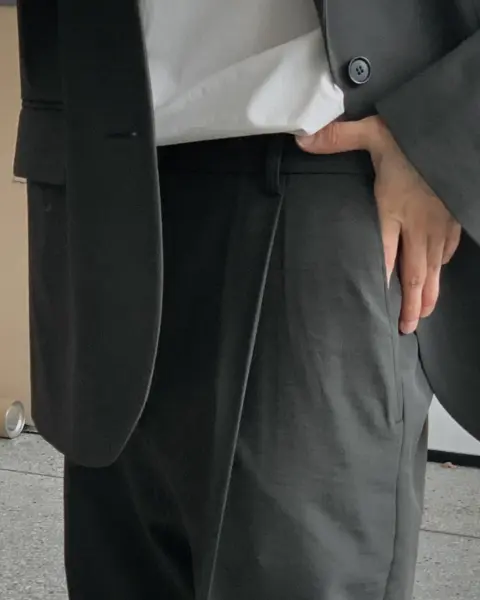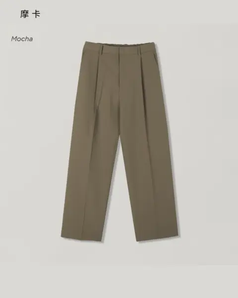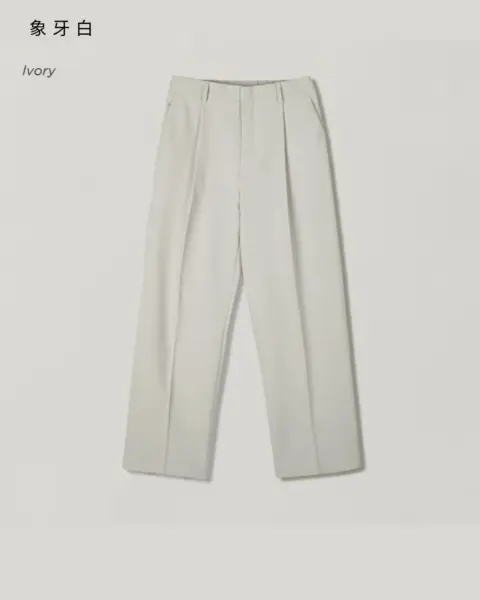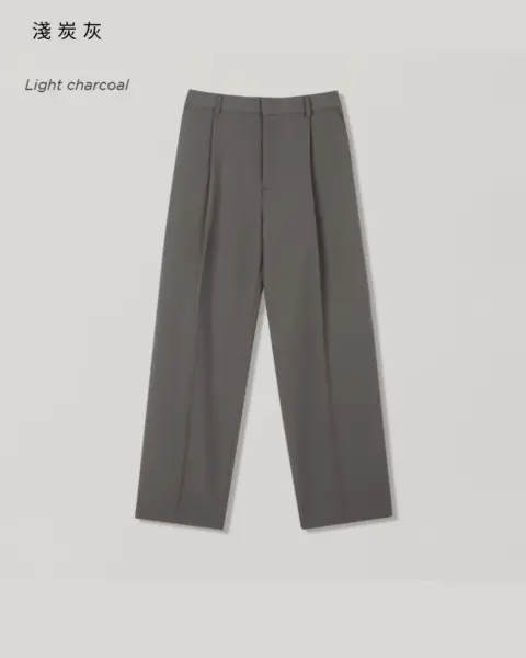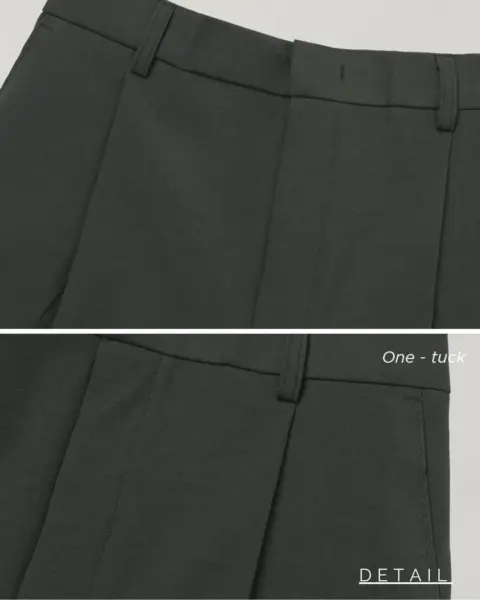 適度寬版 Wide Fit 搭配前側 One-Tuck 單摺設計,修飾腿型比例,同時保有立體感。