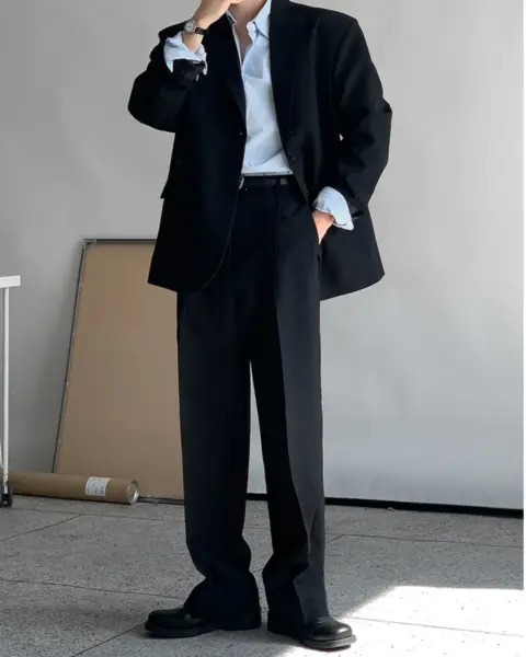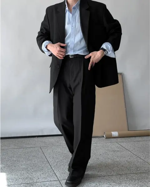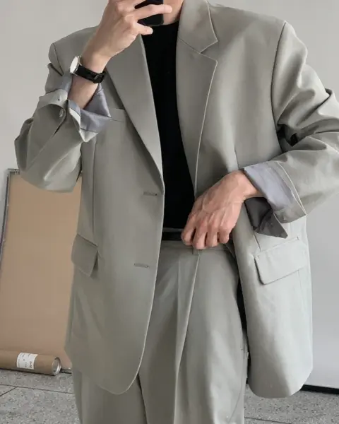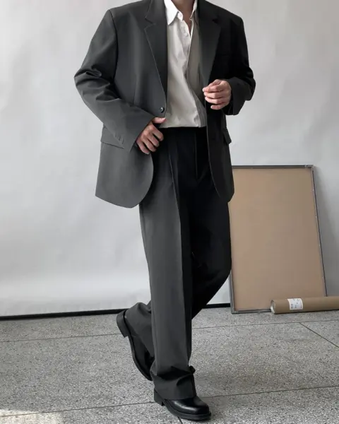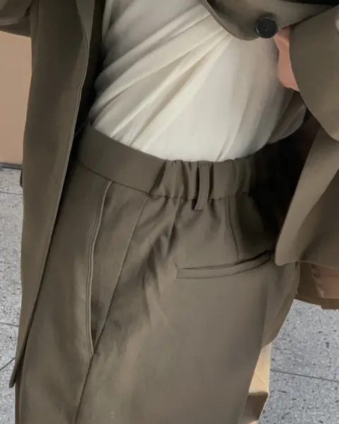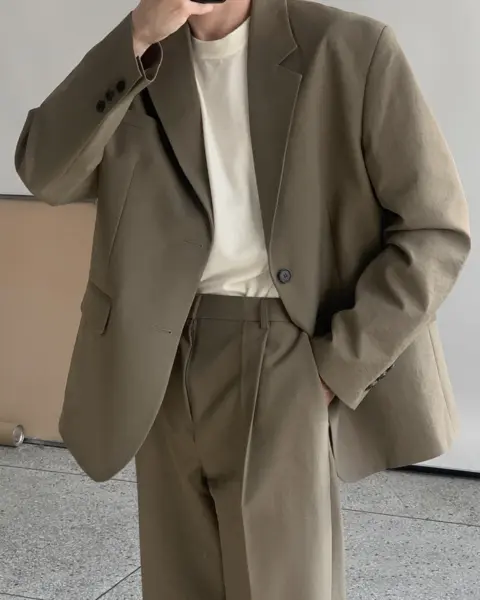採用 Polyester 面料製作,布料手感滑順且具挺度,不易軟塌,穿著時線條俐落。