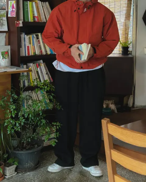 版型為 F Size,穿起來有自然的寬鬆空間,適合當外層直接罩上完成造型。