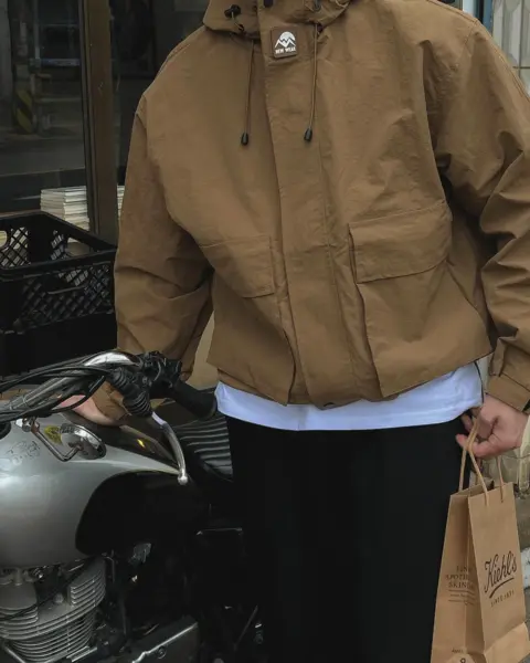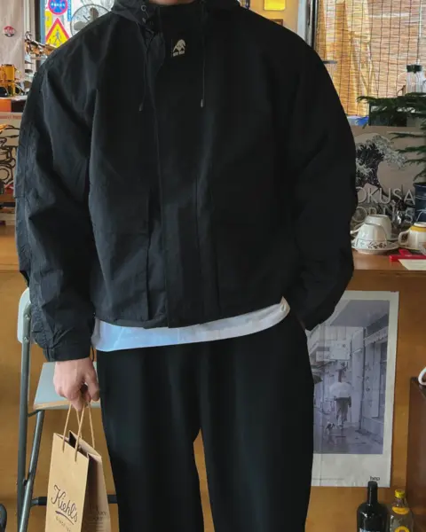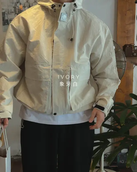 這款是偏戶外機能感的防風外套,整體輪廓俐落、日常也很好搭。