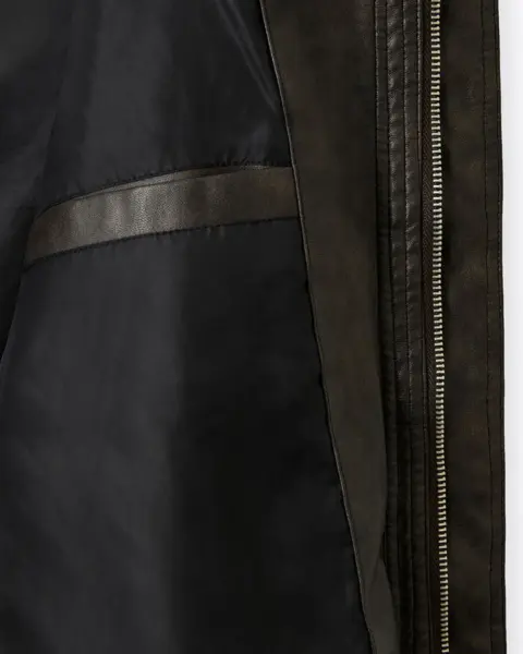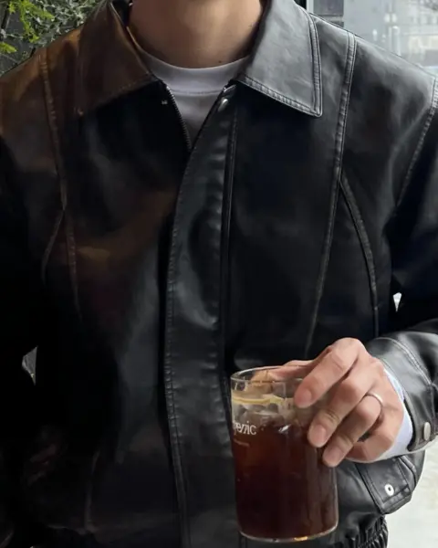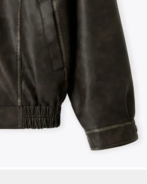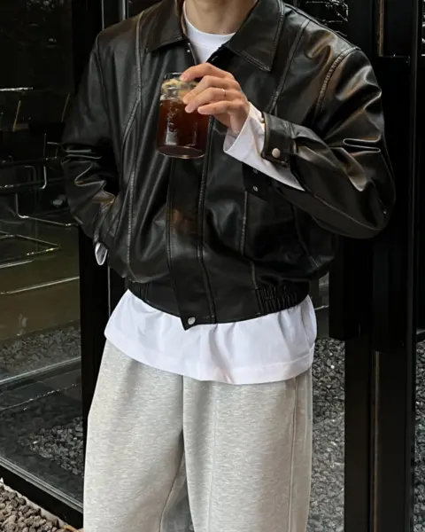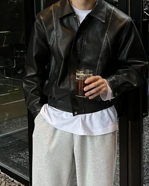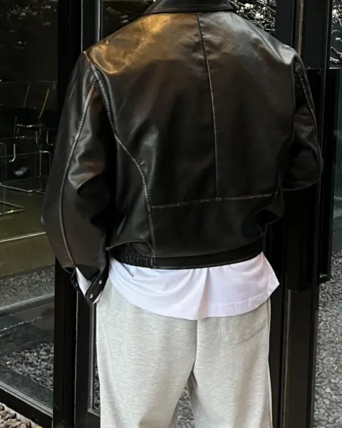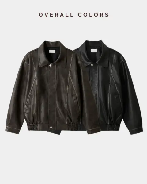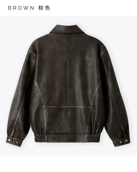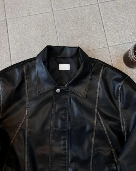 帶有「做舊水洗、像微微磨損」的復古皮革質感,搭配俐落的剪接線條,整體完成度很高、穿起來不會軟塌。