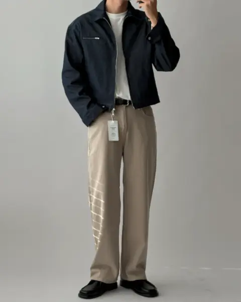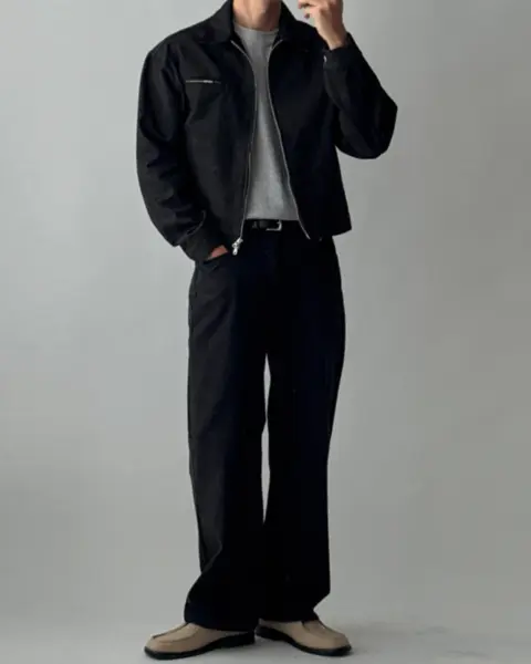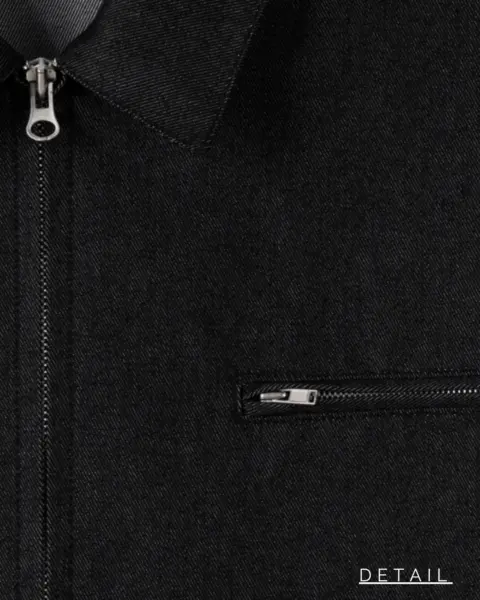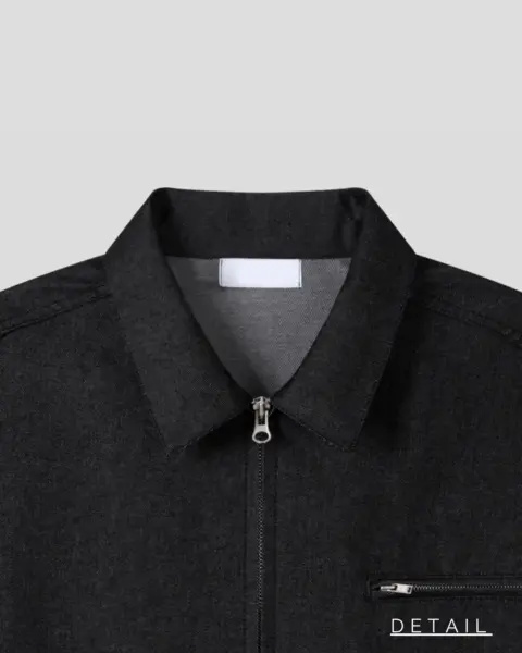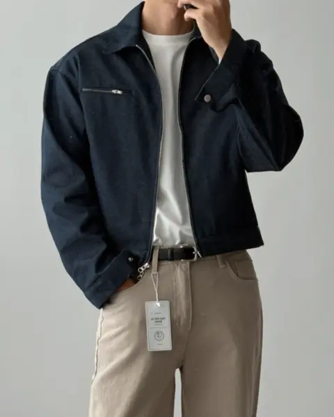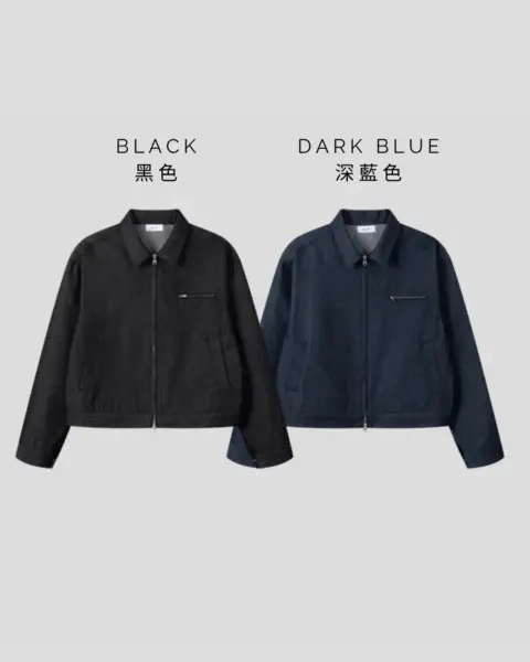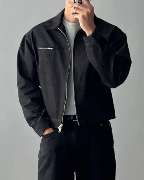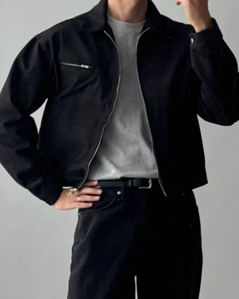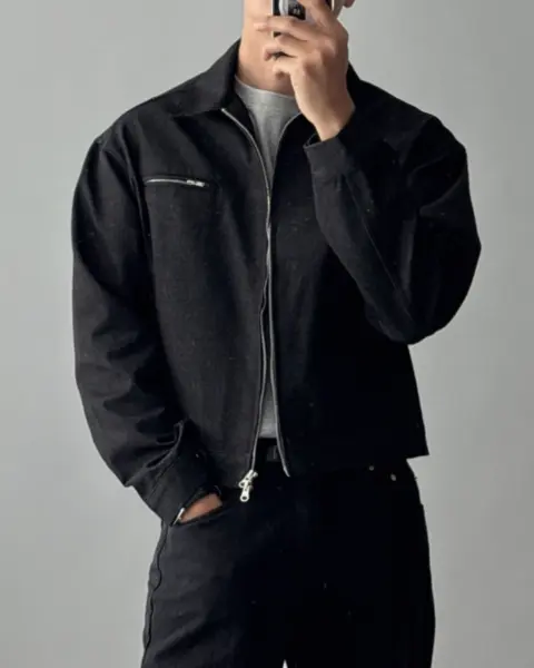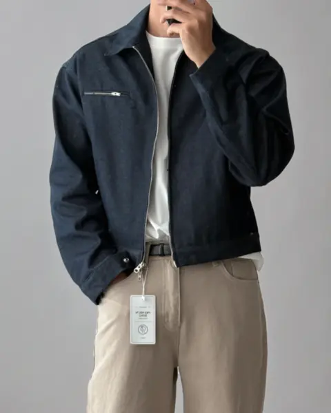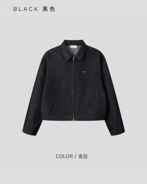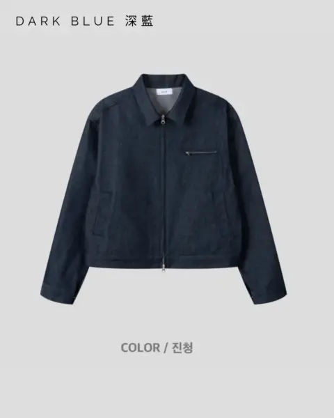 這款為 cropped 版型設計的丹寧外套,採用카라+지퍼(翻領+拉鍊)設計,整體風格乾淨俐落,偏極簡路線。丹寧布料手感柔軟,活動時更舒適;厚度適中,特別適合春秋換季穿著,日常搭配實穿度高。