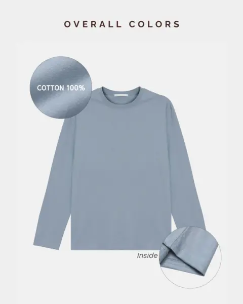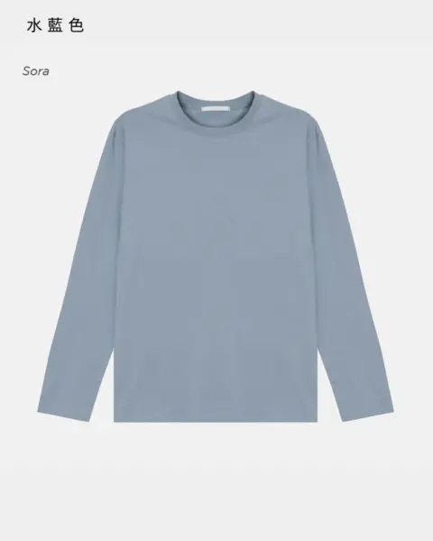 採用 20 支純棉布料 製作,布感輕盈卻保有基本挺度,是一款兼具實穿度與高 CP 值的日常長袖 T 恤。