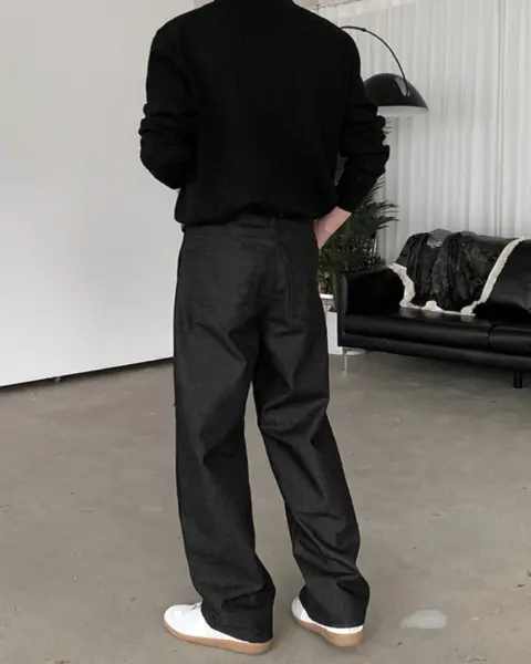 整體為適中 Wide Fit 版型,線條自然不誇張,屬於百搭耐看的基本寬版丹寧設定。