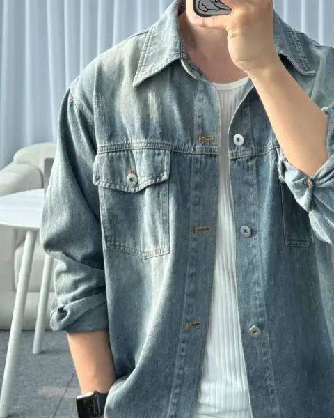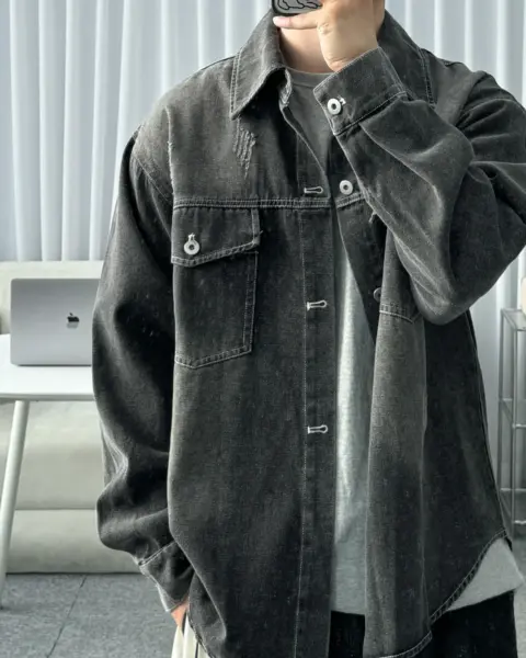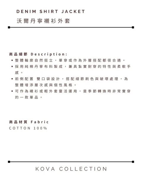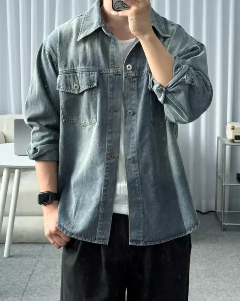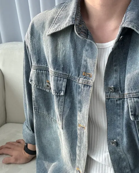 商品細節 Description 這款是「襯衫版型 × 外套用途」的牛仔襯衫外套,整體做成偏寬鬆的 Over Fit,單穿就有份量感、當外搭也很順。採用棉質丹寧面料,觸感偏柔但布性扎實,適合日常反覆穿搭;正面雙口袋+刷破(Damage)細節,讓整體更有街頭層次感。 商品材質 Fabric COTTON 100% 顏色 Color BLACK|黑色|블랙MID BLUE|中藍|미드블루 尺寸 Size(單位:cm) Free肩寬:54 / 胸寬:63 / 袖長:58 / 衣長:73(不含領)*尺寸測量方式與位置不同,可能有 1–3 cm 誤差 Model Info 177cm / 70kg(上衣100 / 下身29)穿著 Free 本商品為韓國預購款,訂單成立後約 7–21 天出貨,敬請理解與等候。