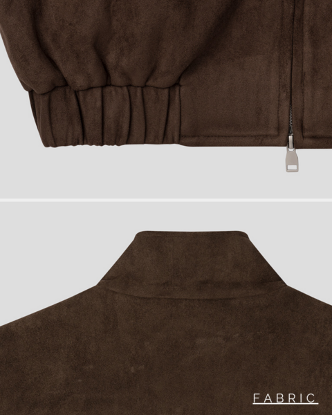 採用柔軟細緻的麂皮感(Suede)面料製作,觸感溫潤、不厚重,整體呈現低調而有質感的外套風格,適合春秋與換季時節穿著。