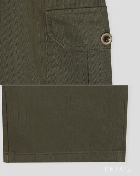 褲身加入細緻的人字紋織紋,低調中帶出層次感,使整體視覺更顯成熟、有質感。