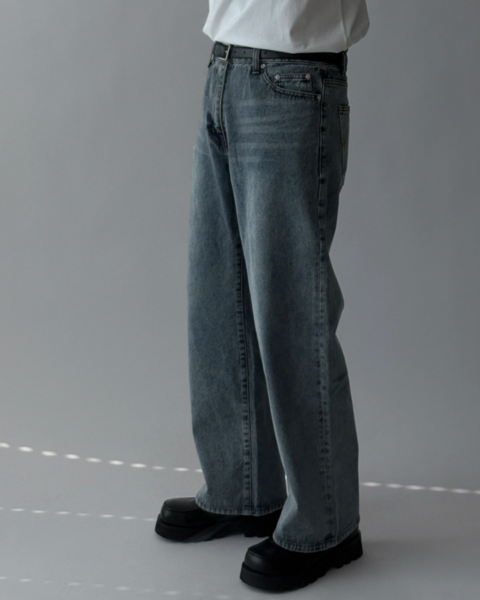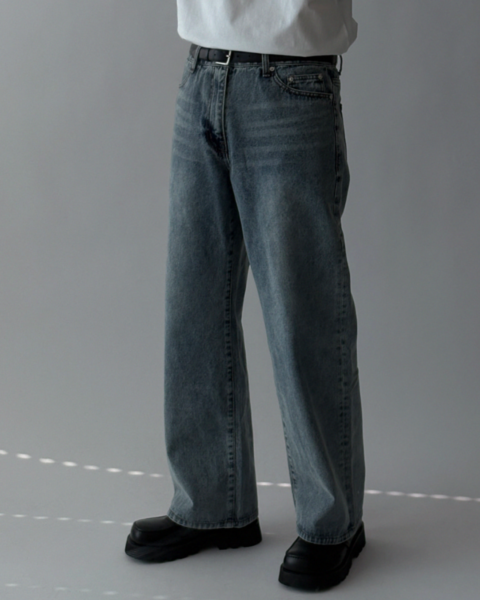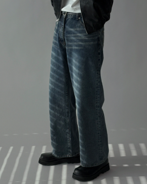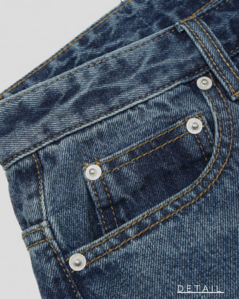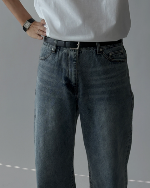 這款為基本水洗刷色的日常丹寧褲,整體刷色乾淨自然,搭配性高。版型為半寬版輪廓,穿著時腿部線條順暢,能有效修飾比例並拉長視覺效果;面料厚度適中,四季皆可穿著,日常搭配任何上衣都相當穩定,是一條實穿度很高的基本款牛仔褲。