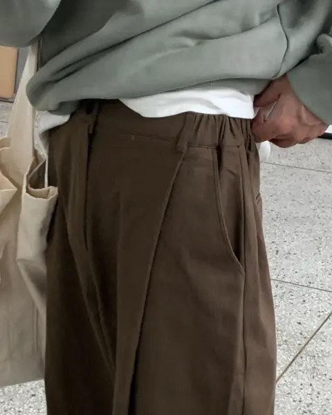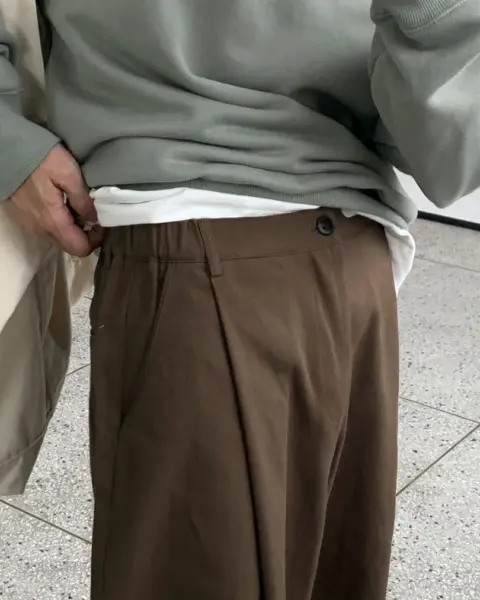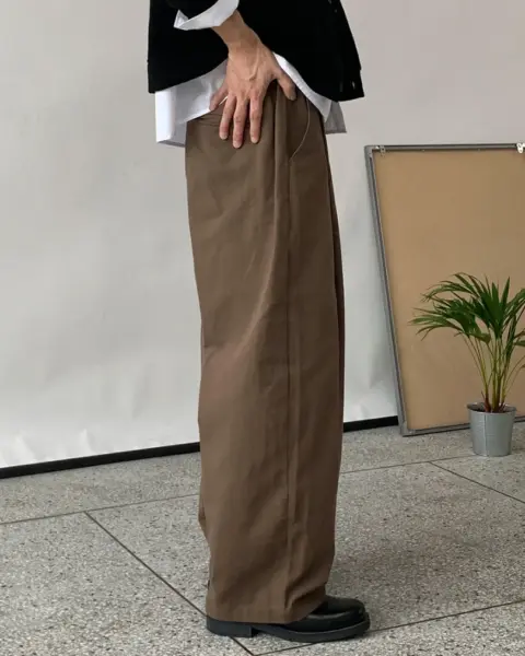 整體為 寬鬆 Wide Fit 版型,搭配 單摺(One Tuck)細節,讓褲型線條自然立體,不顯膨脹。