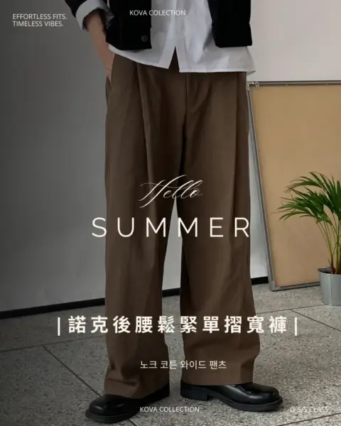 諾克後腰鬆緊單摺寬褲 /5色