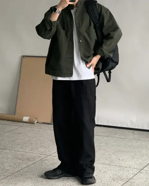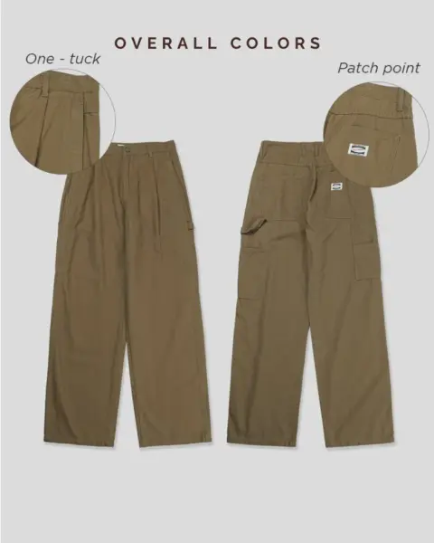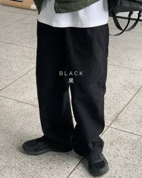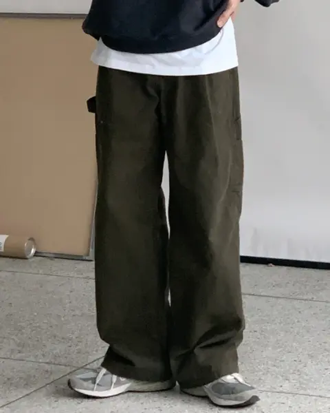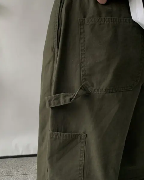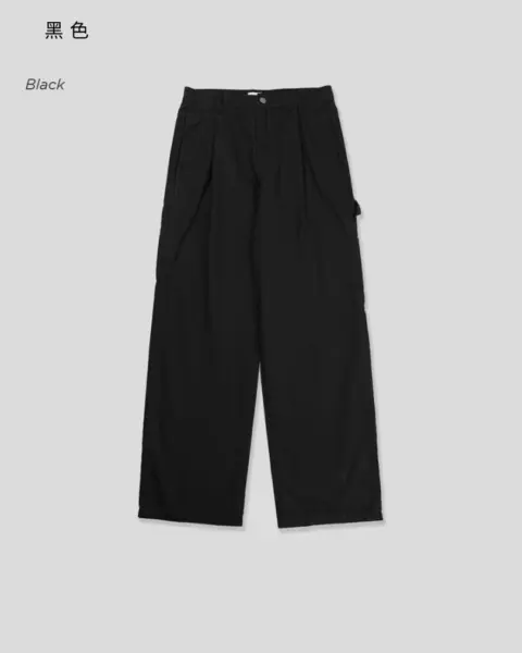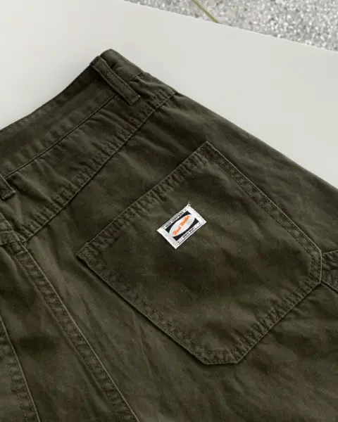 細節融入 側邊工作口袋、後口袋標籤元素,在簡約輪廓中加入工裝風格亮點。