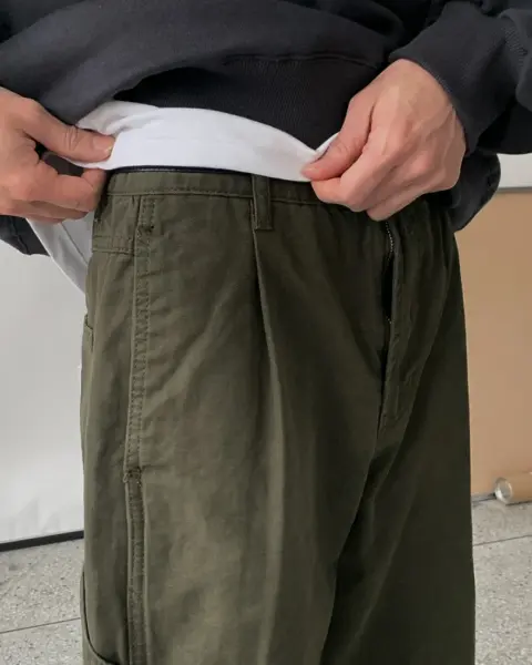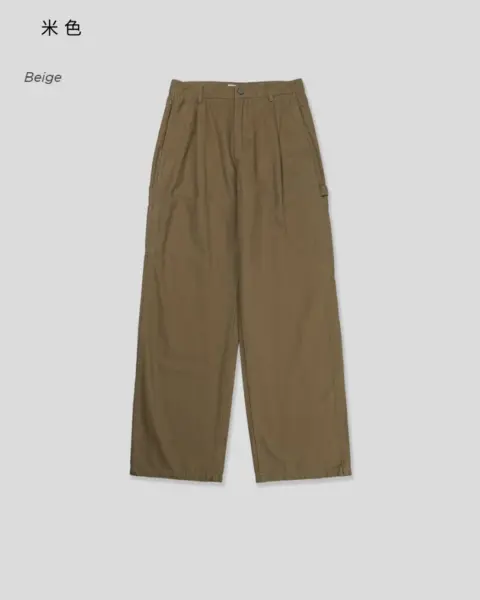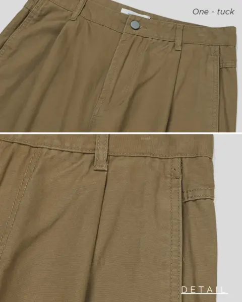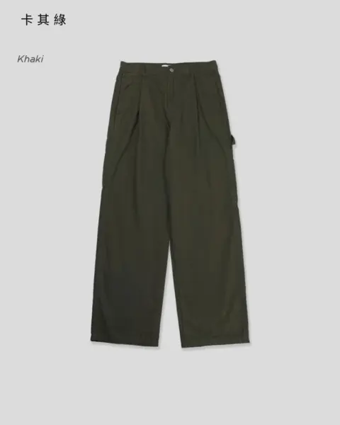 版型設定為 寬鬆 Wide Fit,搭配 單摺(One-Tuck)設計,讓褲型線條自然立體、不顯呆板。