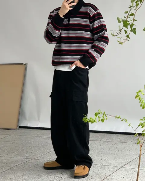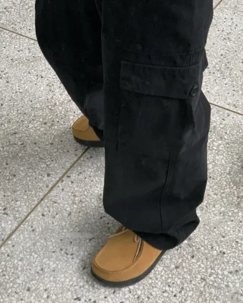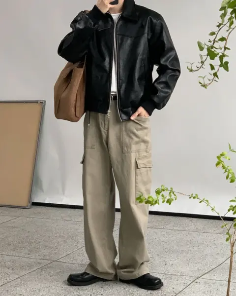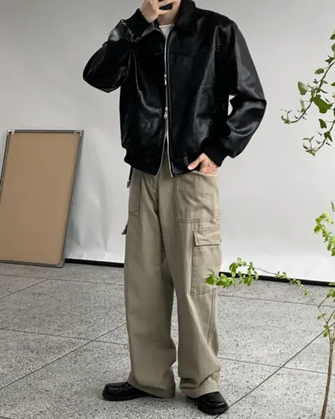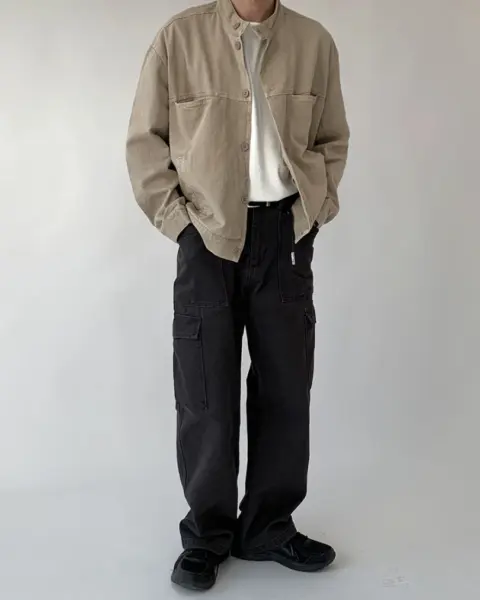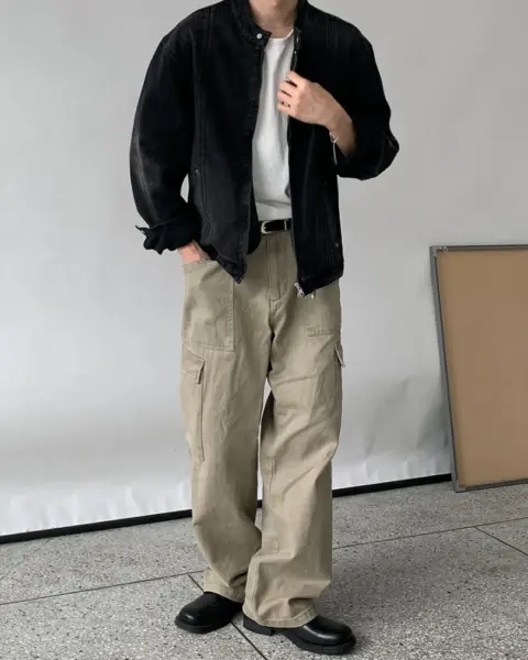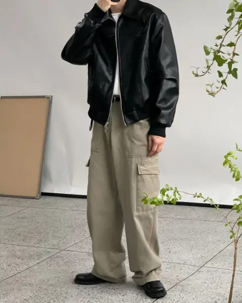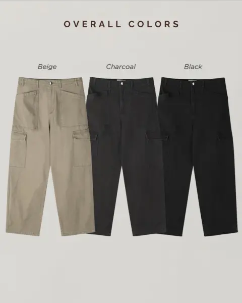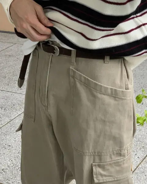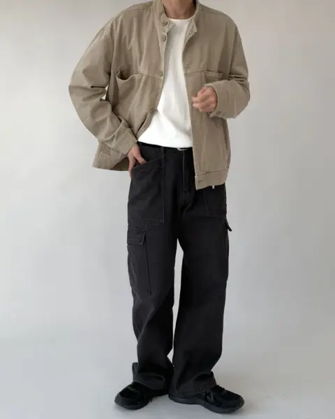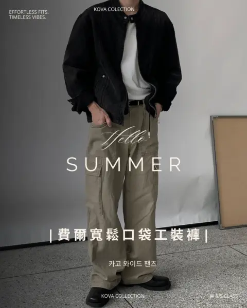 整體為 寬鬆 Wide Fit 剪裁,褲型線條俐落,搭配大容量口袋與 Cargo 工裝細節,兼具造型感與實用性。