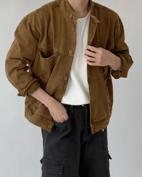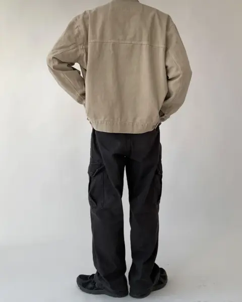 採用 高密度純棉布料 製作,布料手感紮實卻不僵硬,呈現自然帶點粗獷的工裝質感。