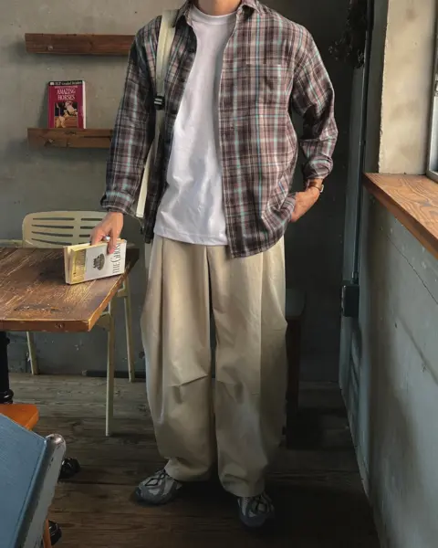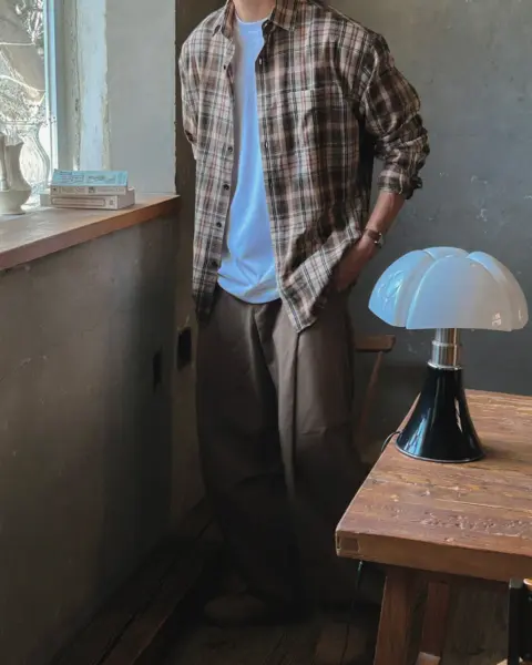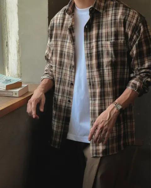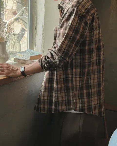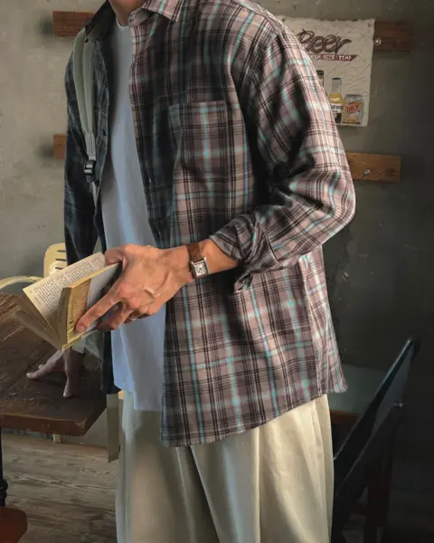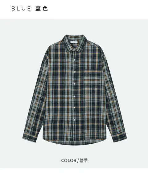 這款是帶「沉穩藍調」氛圍的格紋襯衫,顏色不會太張揚,但近看很有質感;特別適合想要穿出秋冬層次、又不想太花俏的人。黑色款屬於偏深色系、很好搭,藍色帶一點復古感,搭配牛仔褲或卡其褲都能很自然做出休閒街頭感。版型 Free 偏寬鬆,衣長前後做出落差,外搭時更有比例感;尺寸可涵蓋約 95–105 以上的穿著範圍。