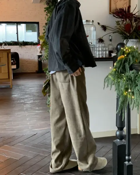 採用帶有微微毛呢感的柔軟面料,整體觸感溫潤不刺膚,非常適合秋冬與換季時節穿著。
