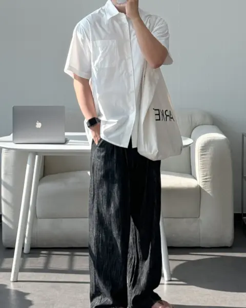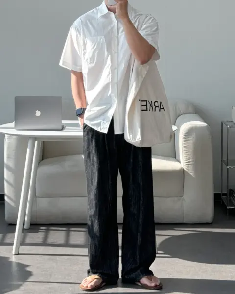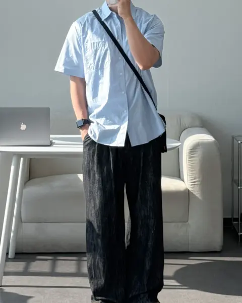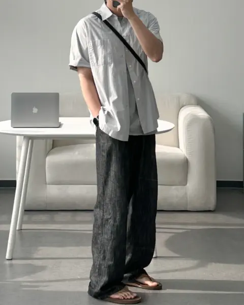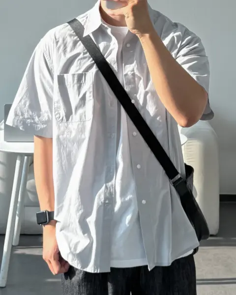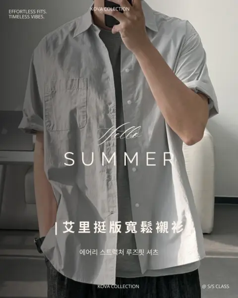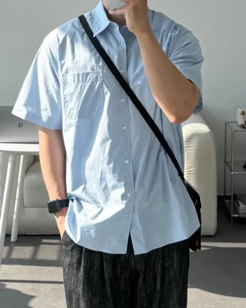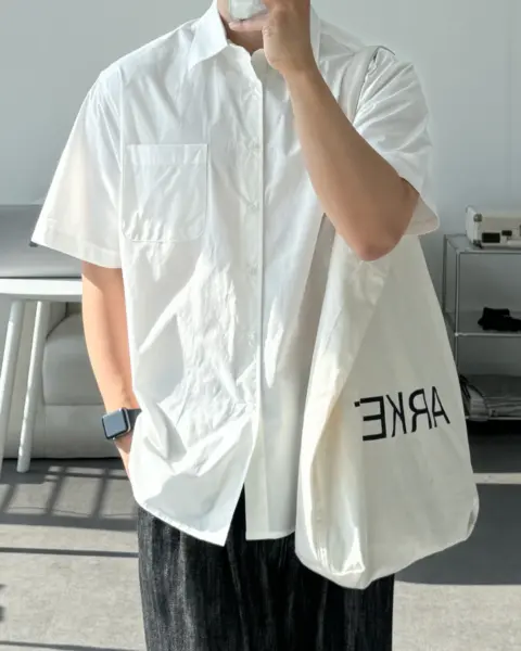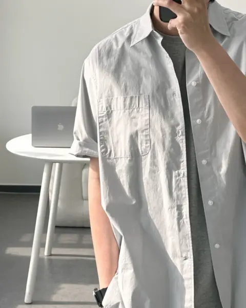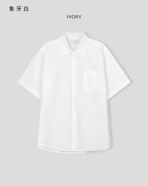 這款是用 60支有機棉做的日常半袖襯衫,布料手感柔軟、穿起來很舒服,版型也留有寬鬆餘裕且挺拔,不會緊繃卡身;再加上 bio washing 處理,能把洗後變形的狀況降到更低。整體設計偏基本、很好搭,顏色選擇也多,單穿或當外搭都很實用。