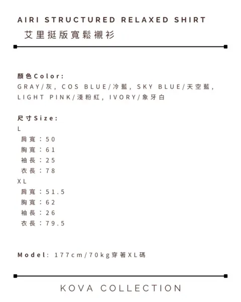 XL:肩寬 51.5 / 胸寬 62 / 袖長 26 / 總長 79.5(不含領)